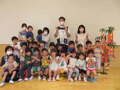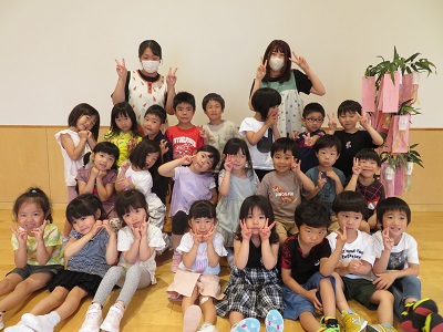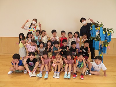 気温が高すぎるため、室内での開催になりましたが、七夕の由来をみんなで聞いたり、