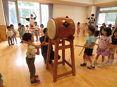 ひまわり組さんが叩く太鼓に合わせて踊りを踊ったり、と楽しく過ごしましたよ♪