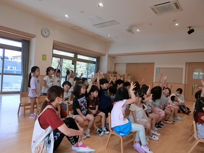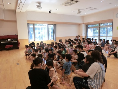 9月7日に9月生まれのお友達の誕生会を行ないました。 みんなでたくさんお祝いをして、お誕生日のカードのプレゼントは大喜びでしたよ☆ 保育士の出し物はヒーローショーを行い、そちらも楽しんで参加していました!