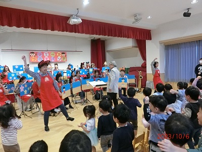 10月6日にマミーズブラスバンド演奏会を開催しました。 マミーズブラスバンドの皆様をお招きしてたくさんの楽曲を演奏していただきましたよ! 指揮者の体験ができたお友達もいて、とても充実した時間を過ごすことができました。 素敵な演奏を本当にありがとうございました!