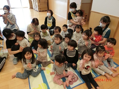 今回は1歳児のお友だちも一緒に参加してお祝いしましたよ☆