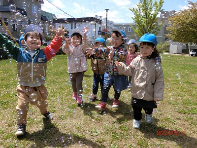 大きいクラスのお友達は公園でお弁当を食べて、みんな大喜びでした♪