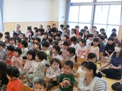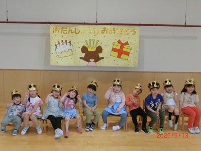 5月13日に5月生まれのお友達の誕生会をしました。 たくさんのインタビューやお歌、そしてカードのプレゼントでたくさんお祝いしましたよ☆ 保育士の出し物はマジックショーで、たくさんのマジックに目を輝かせて見ていましたよ♪