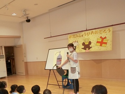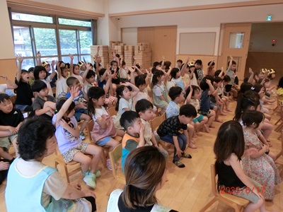 6月17日に6月生まれのお友達の誕生会をしました。 6月はたくさんの誕生児さんがいたので、インタビューもいっぱい行うことができました! 歌やカードのプレゼントもとっても喜んでもらえましたよ♪ 保育士の出し物はシルエットクイズ。保育園の中にあるものがシルエットになり、みんな張り切って答えていました!