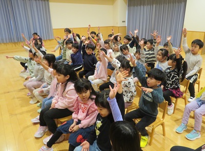 11月28日に指導員の方をお招きして、交通安全教室を行いました。 様々なクイズやスライドショーなどを交えながら、分かりやすく冬の道路の約束事を教えてもらいました。 今後の冬遊びの際に、子どもたちと一緒に確認していきたいと思います。