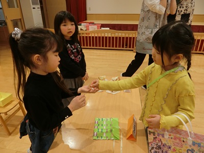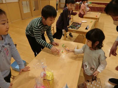 1月23日にお店屋さんごっこをしました。 ひまわり組さんがお店屋さんになり、クラス毎にそれぞれ一生懸命作った品物を売りました。 紙で作ったお金を使って実際に買って、みんな大喜び☆ 工作で作ったラーメンやお寿司、おもちゃなど様々なものをお家に持ち帰りました♪