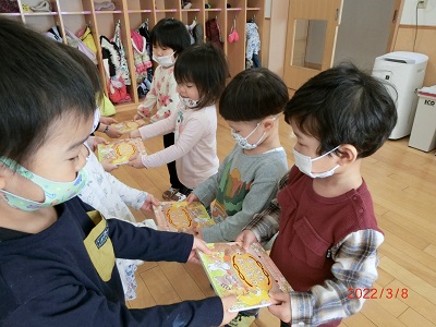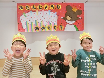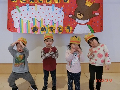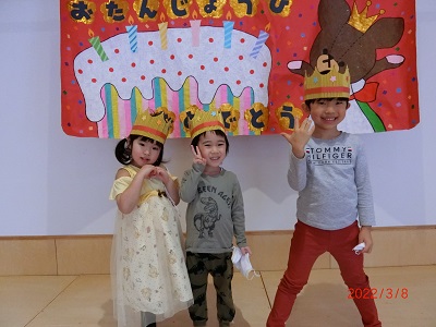 3月8日に3月生まれのお友達の誕生会をしました。 各クラスごとに記念撮影をして、お部屋でカードのプレゼントやインタビューを行いましたよ! 今年度最後の誕生会、みんなお祝いの気持ちを持って楽しんで参加していました。