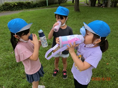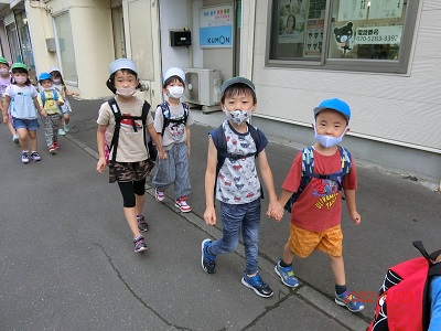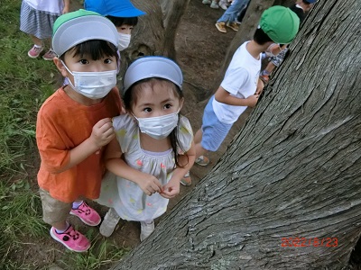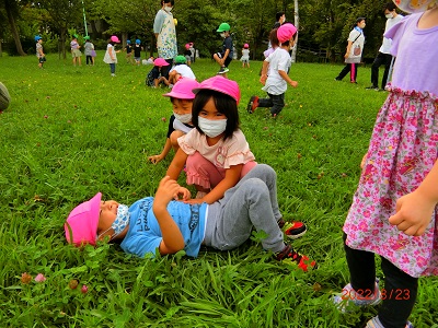 8月23日にすみれ組、ゆり組、ひまわり組で園外保育に行きました! 本当は上町公園に行く予定でしたが、気温が高かったため体調を考慮してエドウィンダン公園に変更になりました。 公園の池ではカモの親子が泳いでいて、みんな目をキラキラさせて観察していましたよ☆ その後、広場での遊びの時間では異なる年齢のお友達ともたくさん鬼ごっこや虫探しをして楽しみました! 保育園に戻って美味しいお弁当を食べ、とってもうれしそうなみんなでした♪