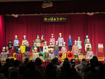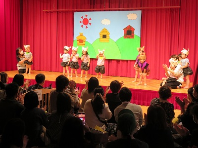 11月12日に発表会を行ないました。 1部と2部に分かれ、1部はちゅうりっぷ・すみれ組の発表で、2部はゆり・ひまわり組の発表を行ないました。 踊りや歌、楽器など毎日この時に向けて楽しみながらたくさん練習してきた子ども達。 本番のステージの上でも今までの練習以上の、本当に素敵な姿をたくさん見せてくれました。 新型コロナウイルス対策のため、歌などの発表の際にはマスクを着用して参加しております。