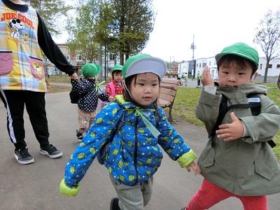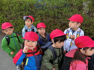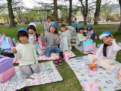 5月9日に春の遠足を行ないました。 クラスごとにそれぞれ行き先を決めて、へリュックサックを背負って出発しました! お花や虫を探したり、遊具で遊んだり、野外ならではの遊びを思い切り楽しみましたよ☆ 遊んだあとは、保育園や公園で、みんなで楽しくお弁当を食べました!